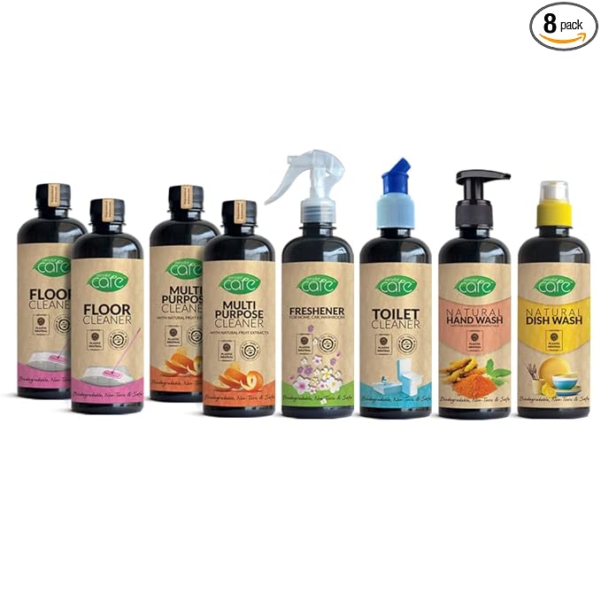 Zerodor Care Natural All In One Cleaning Kit I Multipurpose Cleaners For Floor Kitchen Bathroom Living Room Pack Of 8 I Combo Pack 8 400 Ml Amazon In Health Personal Care